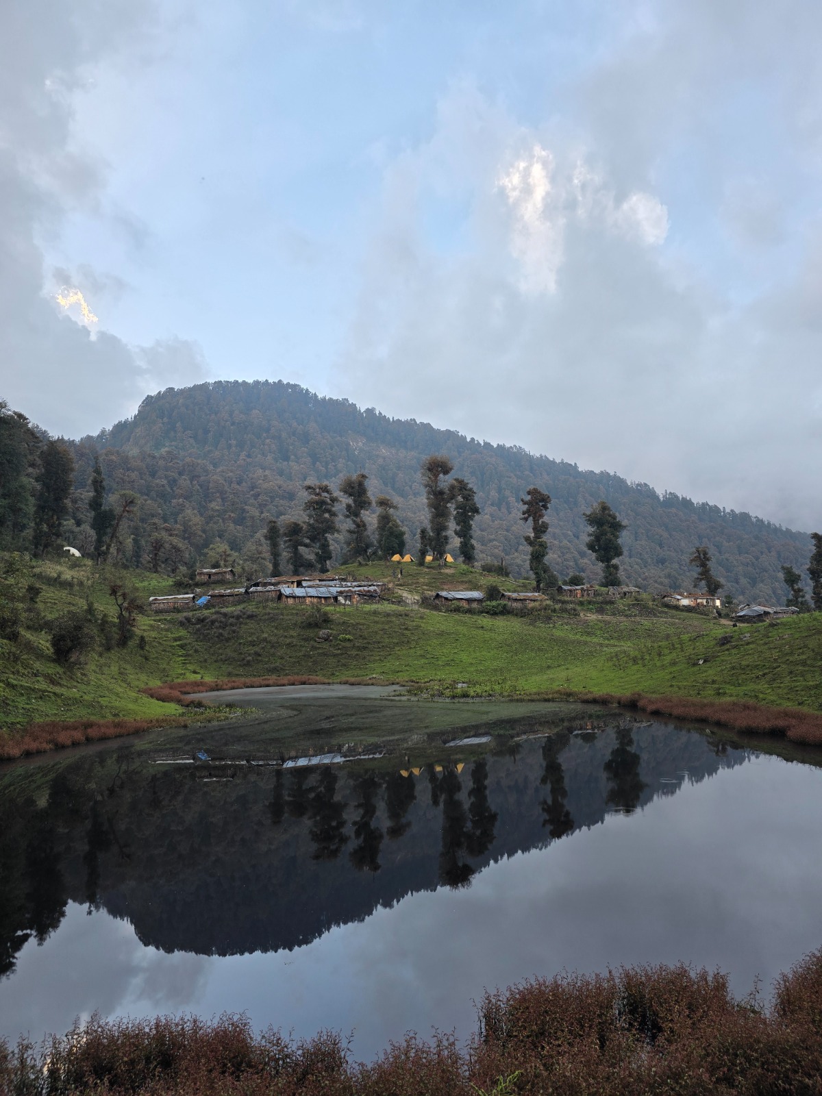 In summer, the meadows are full of bright flowers like blue poppies, daisies, and primroses, making the ground look like a colorful painting. The oak and rhododendron forests around the meadows make the snowy mountains look even prettier. You might even see the Himalayan monal, Uttarakhand’s special state bird, adding a pop of color to your adventure.